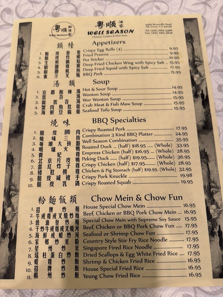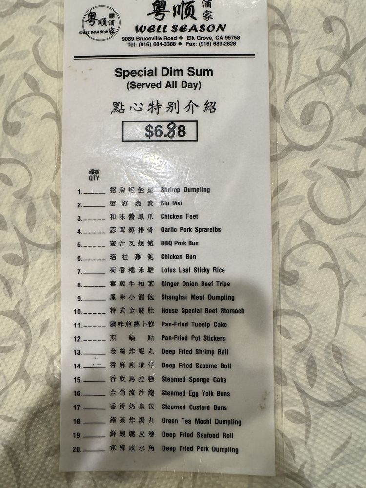 Well Season is a Cantonese restaurant in Elk Grove, CA, offering a diverse menu of noodles and dim sum dishes. With a wide range of vegetarian and vegan options, this casual spot is perfect for brunch, lunch, or dinner. The restaurant provides excellent service, cozy ambiance, and even offers catering services. Customers rave about the shrimp dumplings, yam cake, and chicken feet, mentioning that the black sesame balls are a must-try. The chive dumplings and chicken feet are highlighted as standout dishes, making Well Season a go-to spot for authentic, delicious dim sum in the area. This place has quickly become a favorite among locals, promising a satisfying dining experience every visit.